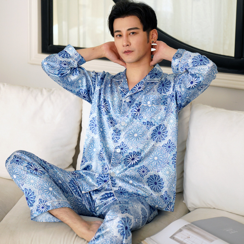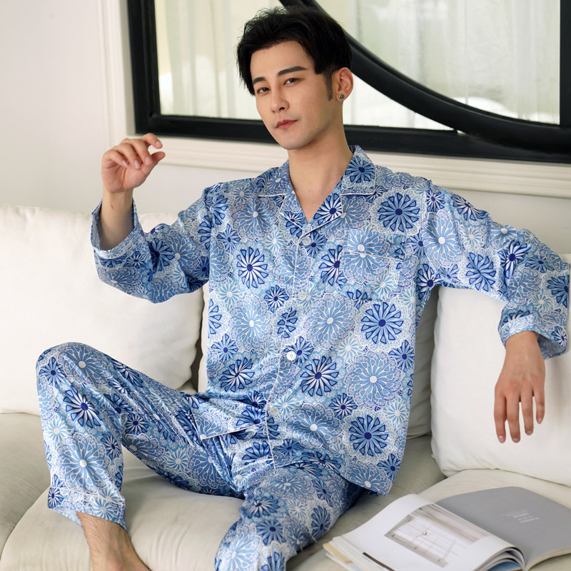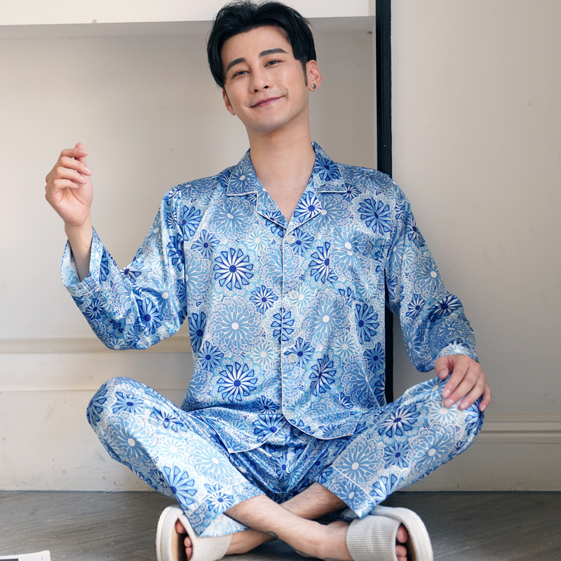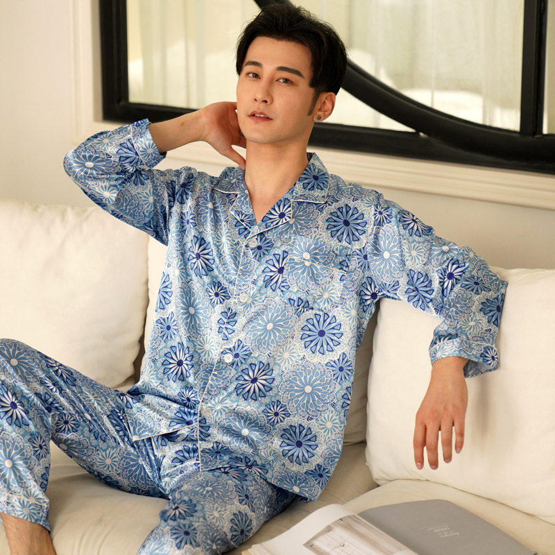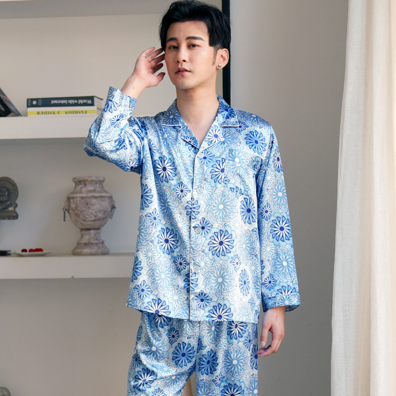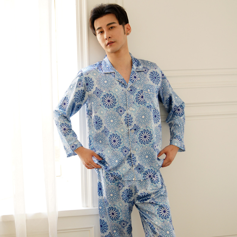 メンズ パジャマ セット 長袖 パンツ かわいい ルームウェア 部屋着 肌に優しい 折り襟 薄手