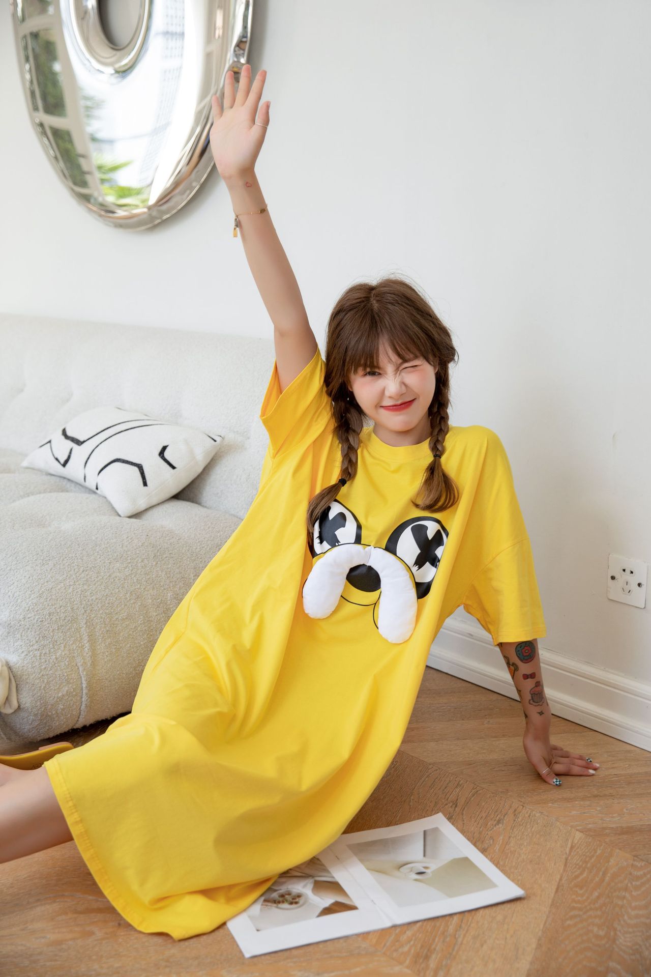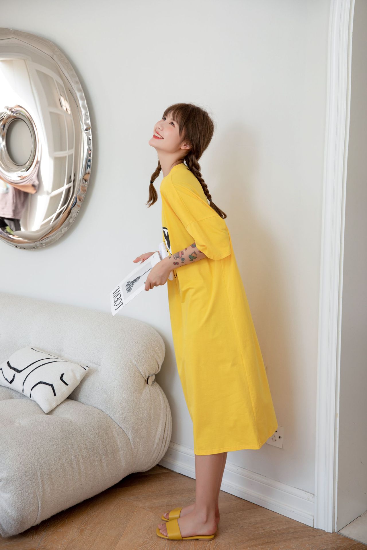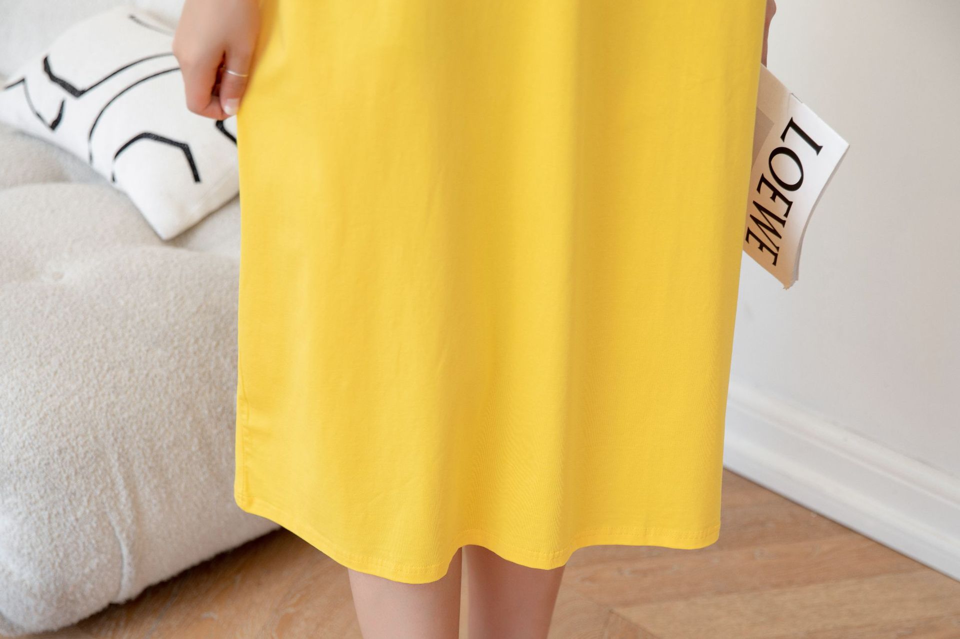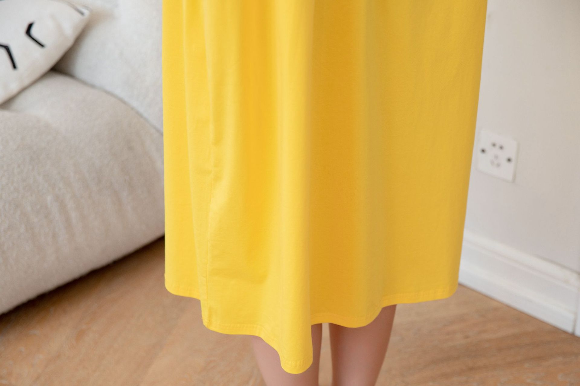 レディース パジャマ 妊婦 半袖 ワンピース マタニティ キュート 部屋着 コットン ラウンドネック 無地