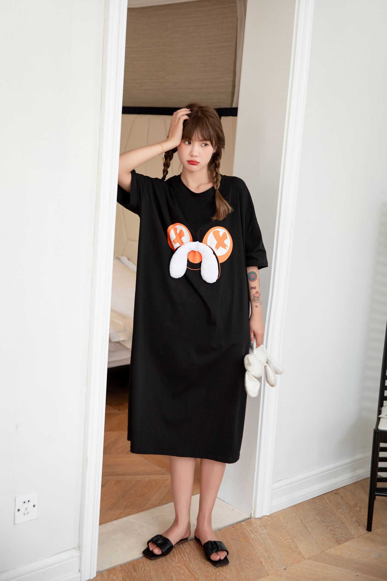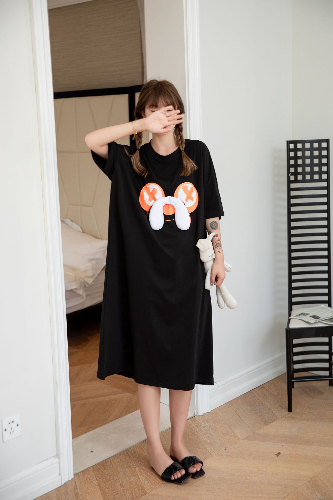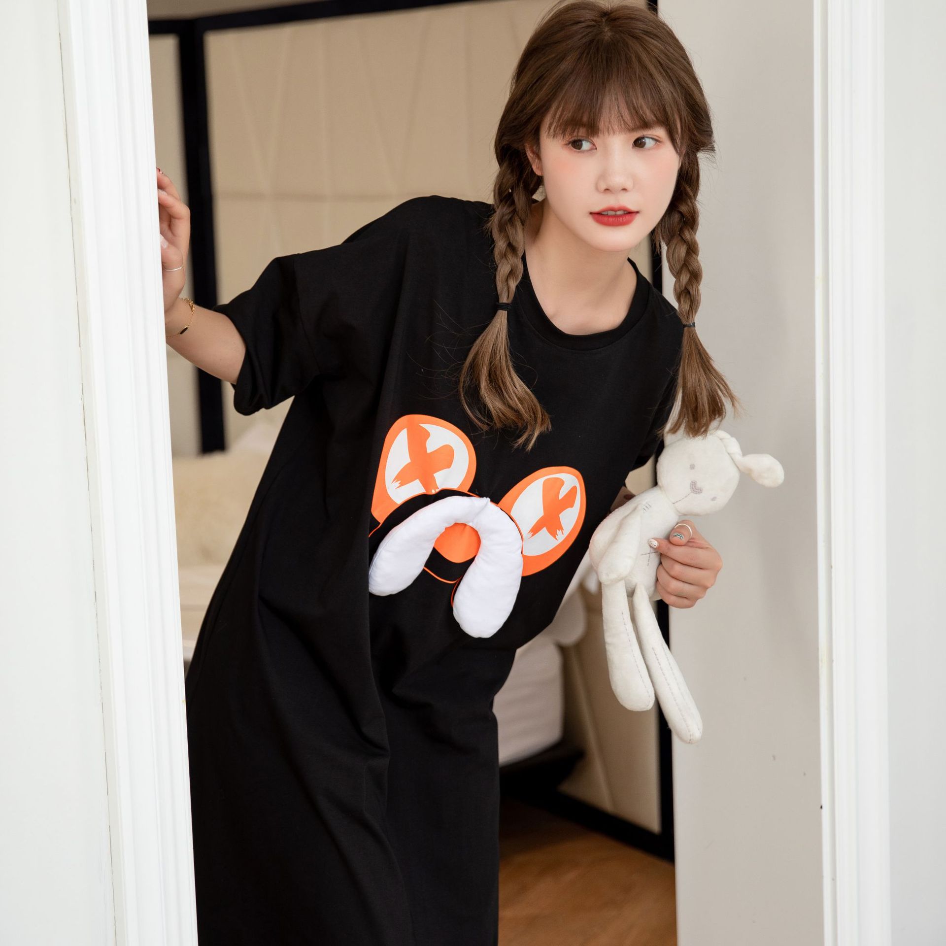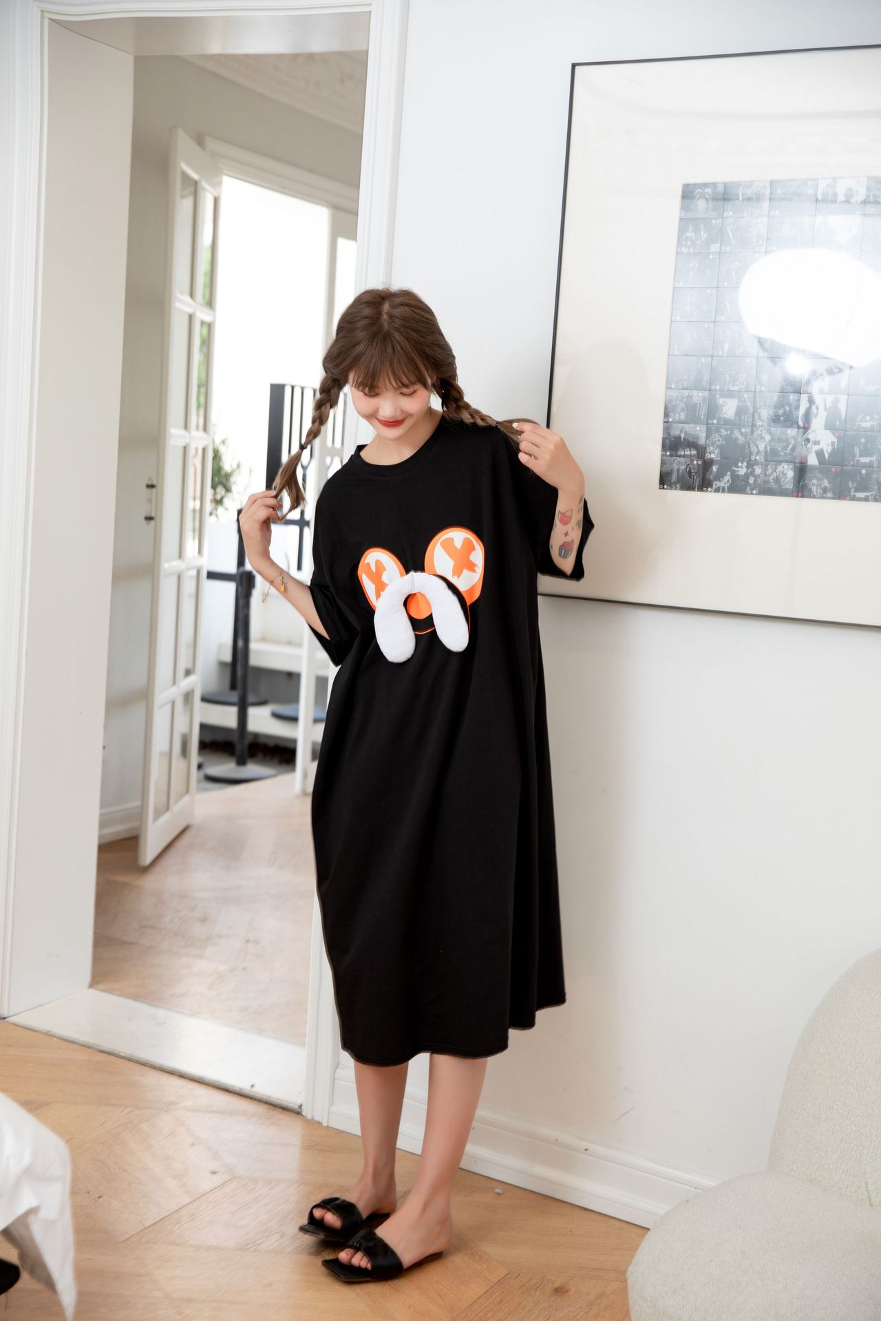 レディース パジャマ 妊婦 半袖 ワンピース マタニティ キュート 部屋着 コットン ラウンドネック 無地