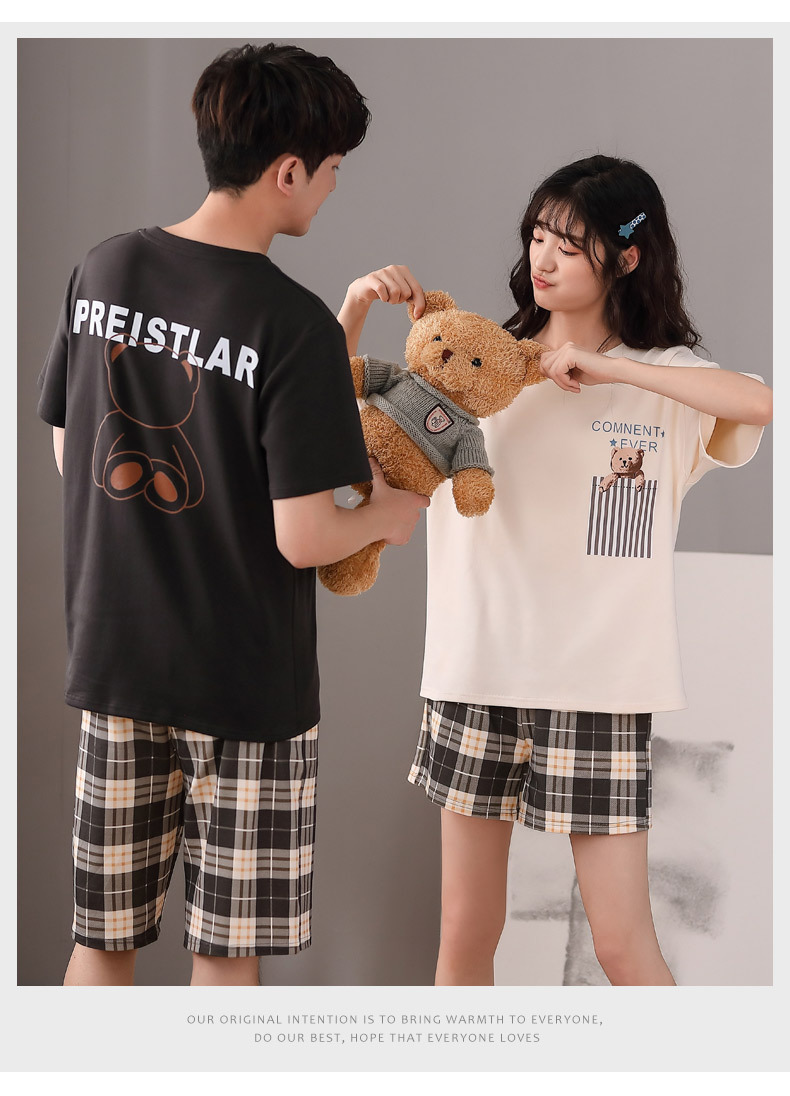 半袖 半 ズボン パジャマ カップル チェック柄 カジュアル